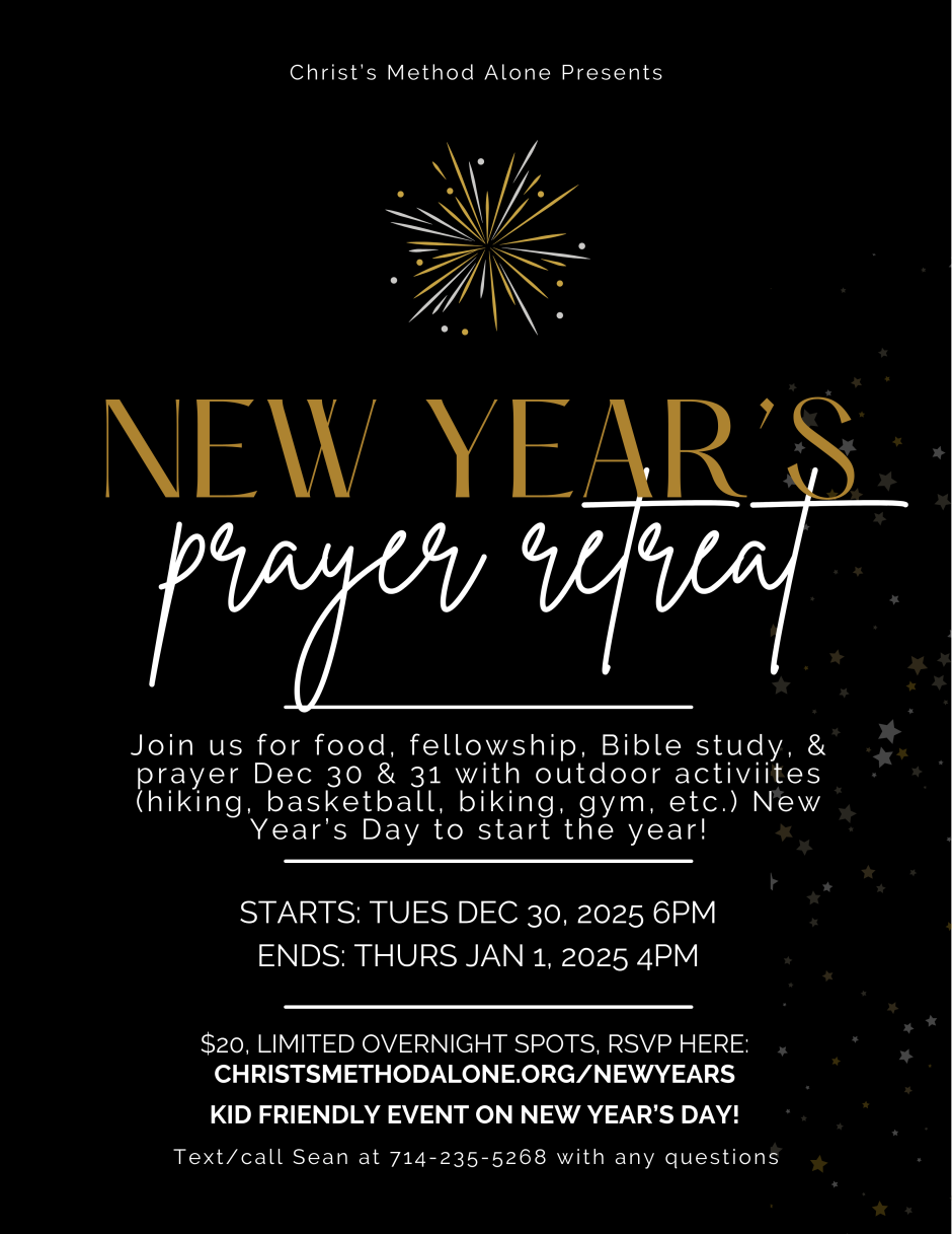 Scroll Below to Register for the Upcoming New Year’s Prayer Retreat Dec 30 2025-Jan 1 2026 Loading… Nov 7, 2024 | Posted by christsmethod | Comments Off on 2026 New Year’s Prayer Party